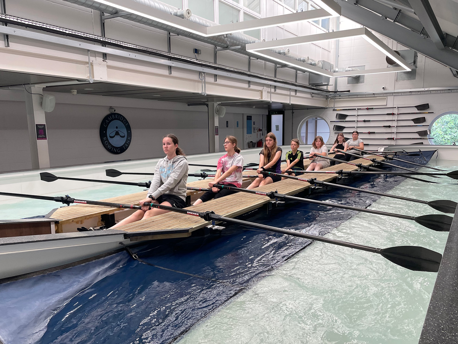 The day began with a healthy breakfast from STIR bakery before splitting into groups to learn the basics of the rowing stroke. Up in the gym, the novice rowers got to grips with the ergo machines and heart rates were soon raised during exhilarating relay races. Meanwhile in The Cambridge Rowing Tank, the eager crews had their first taste of being in a boat and were able to practice getting their strokes in time and understand the importance of team work.