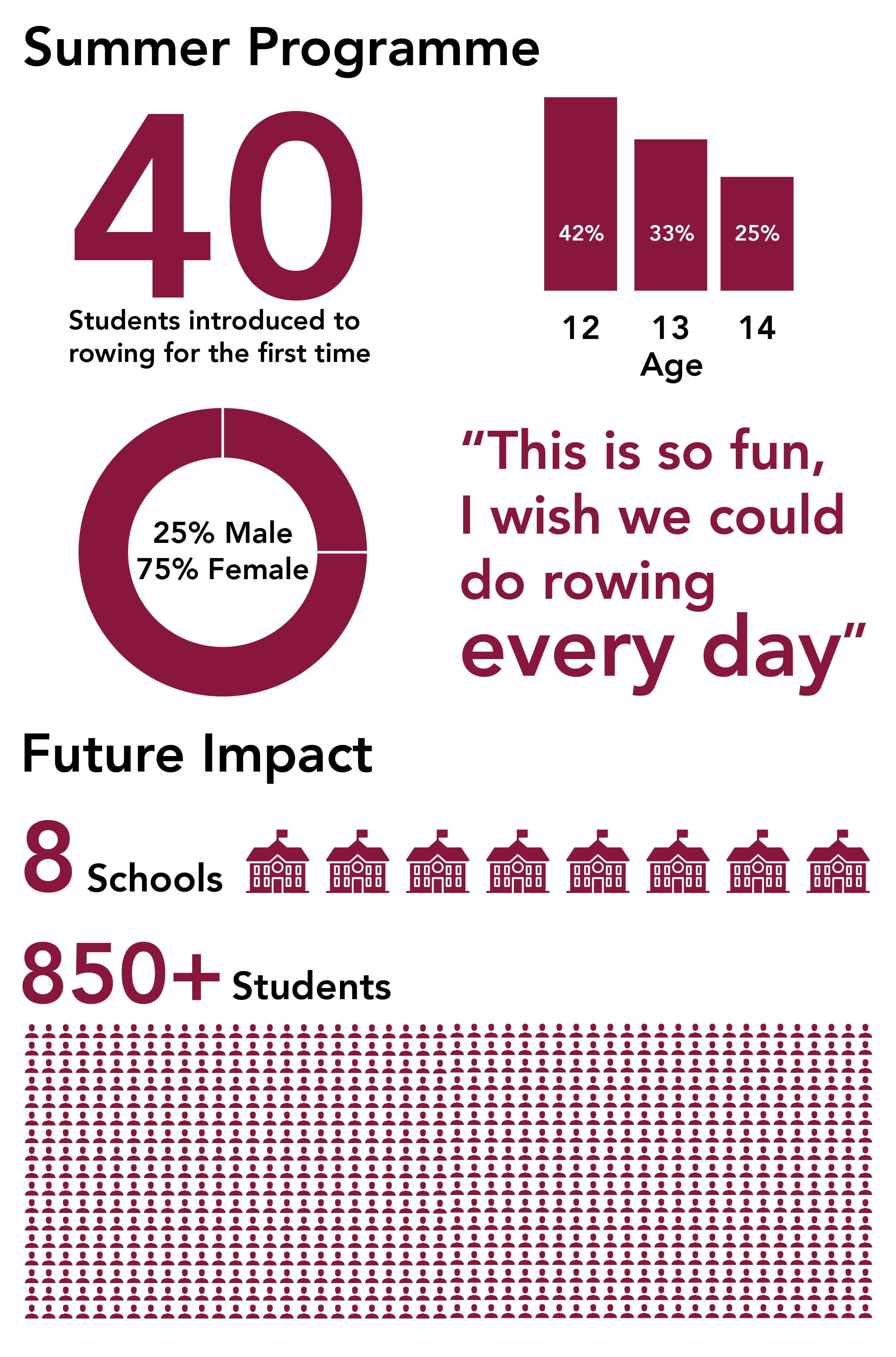 Building on the success of the programme’s first year, this summer EAYR held its first holiday camp. Over five days in July, City of Cambridge Rowing Club (CCRC) welcomed 40 children from North Cambridge Academy to their state-of-the-art boathouse. The programme was designed to spark an interest in rowing among children who would not normally be exposed to the sport, as well as to provide an opportunity for physical activity and access to healthy meals while the school was closed. A unique secondary aim was to inspire the next generation of local scientists: lunchtime Science, Technology, Engineering and Maths (STEM) activities aimed to motivate the young students in the classroom when back on dry land, offering a view into the exciting work happening on their doorstep – which they could one day be a part of.