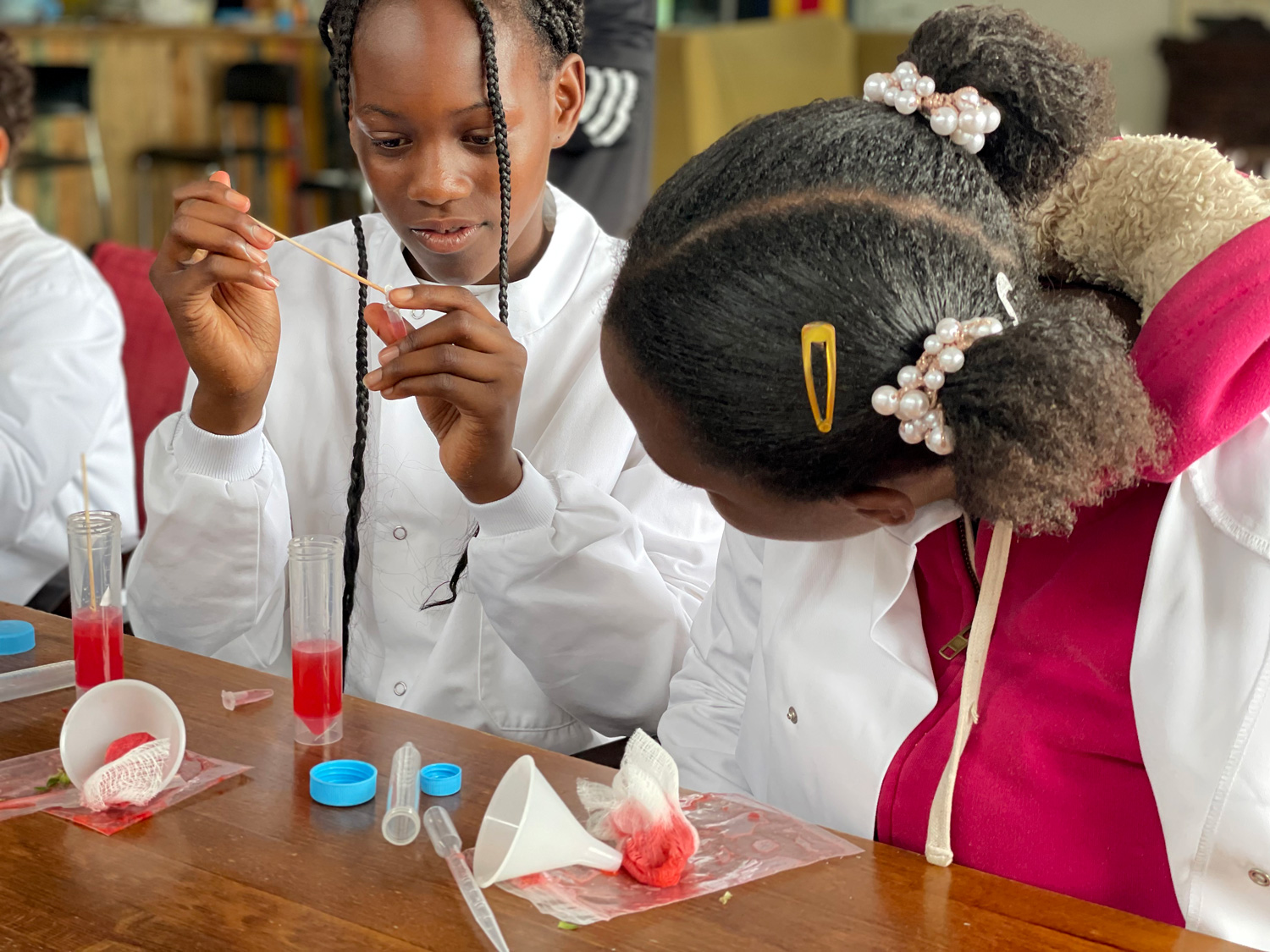 Having cooled down with some stretches and replenished their energy stores with a healthy lunch, students were mesmerised by the magic of science during interactive STEM sessions. Zelna Weich, senior rower at CCRC and PhD candidate at the British Antarctic Survey talked about her work studying ancient ice cores. Truly bringing science alive, she passed around ice brought back from the Antarctic and showed how you could hear 50,000 year old ice bubbles popping – “the freshest air you will ever breathe!” Zelna also described her own journey into a career in science, emphasising the importance of sticking with maths and other STEM classes. Despite the aspirations of the City, many local children are not participating in the subjects that would enable them to be part of the success of ‘Silicon Fen’ on their doorstep. Back in the boathouse lab, practical sessions from staff at genetics sequencing company Illumina demonstrated how DNA can be extracted from strawberries were also a big hit with the budding scientists.